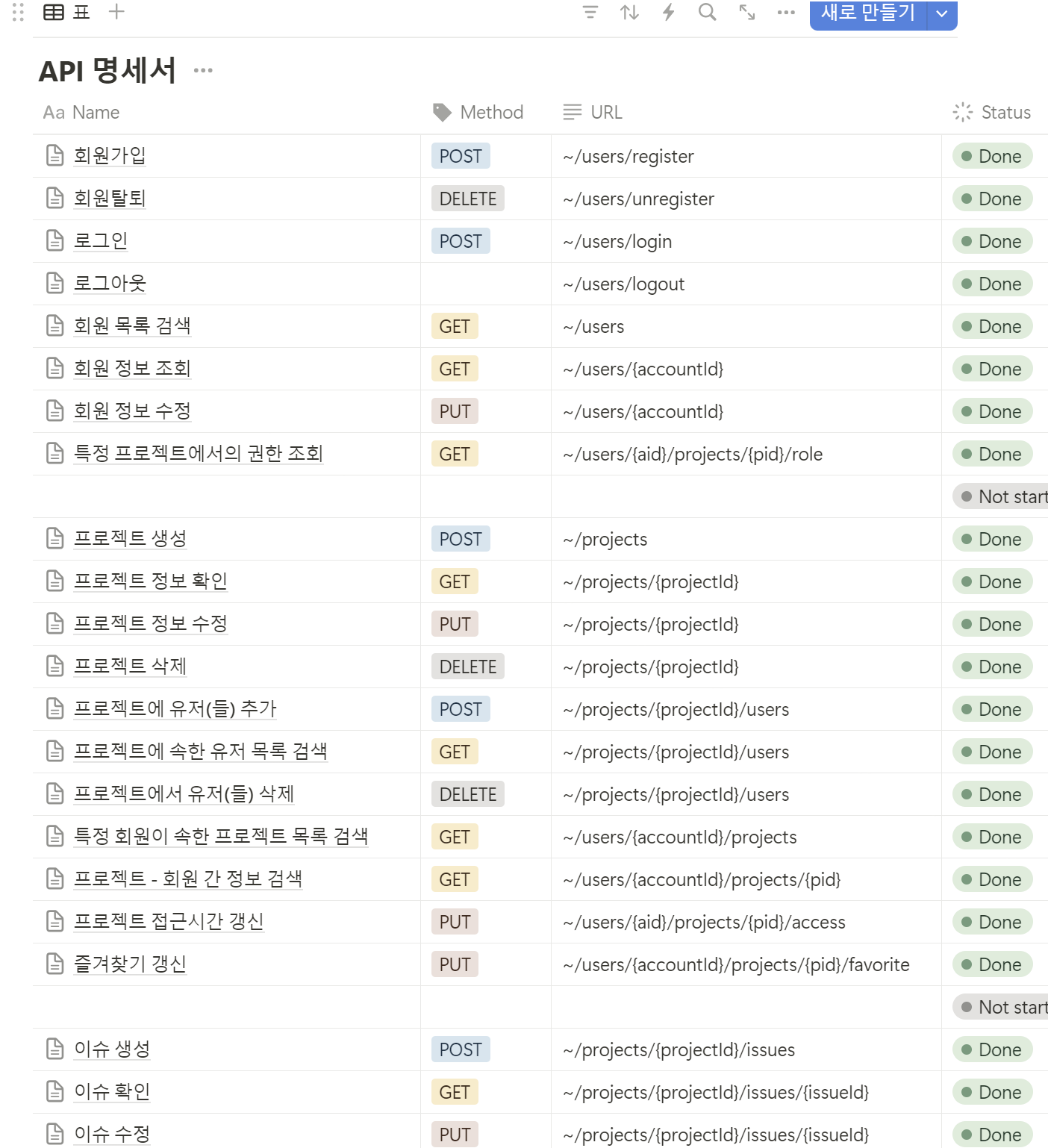 API 명세서도 노션으로 관리했다.
